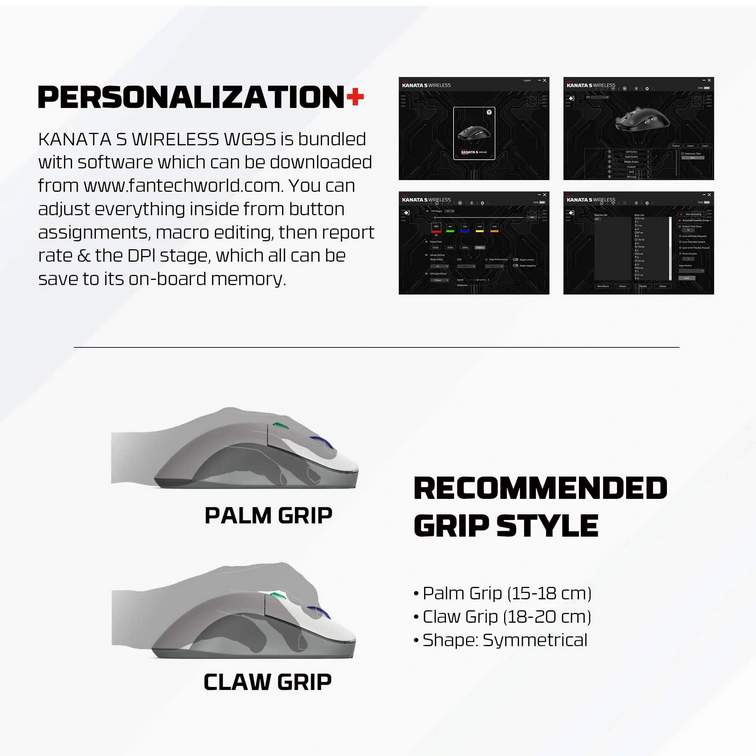 La Fantech KANATA S WG9S Super Maxfit est une souris gaming sans fil compacte et ergonomique, conçue pour offrir confort et polyvalence.